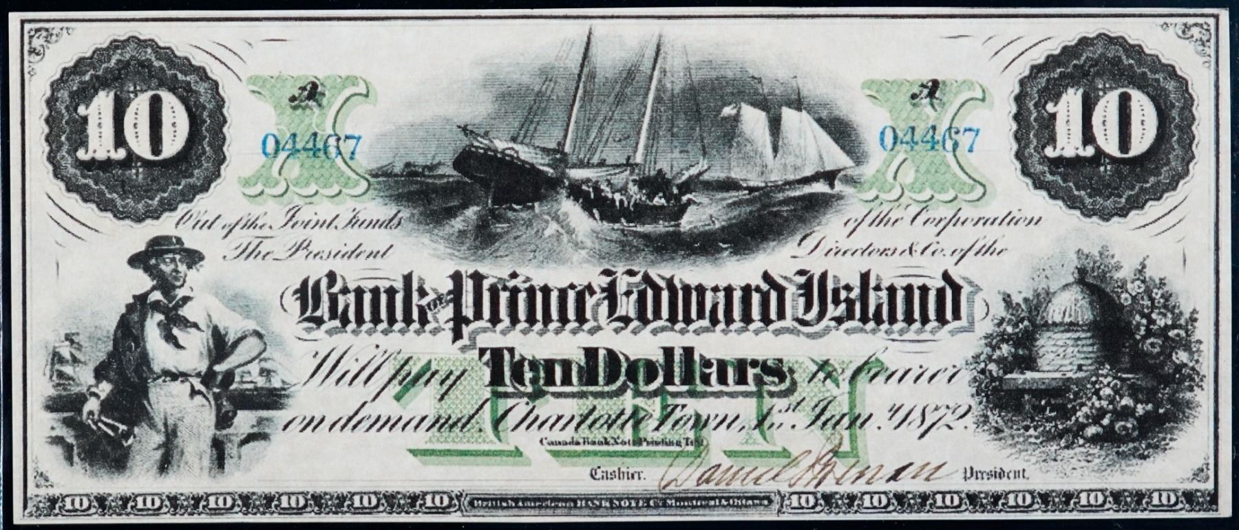 The Bank of Prince Edward Island 1872 $10 CH-600-12-14P Face & Back Proofs