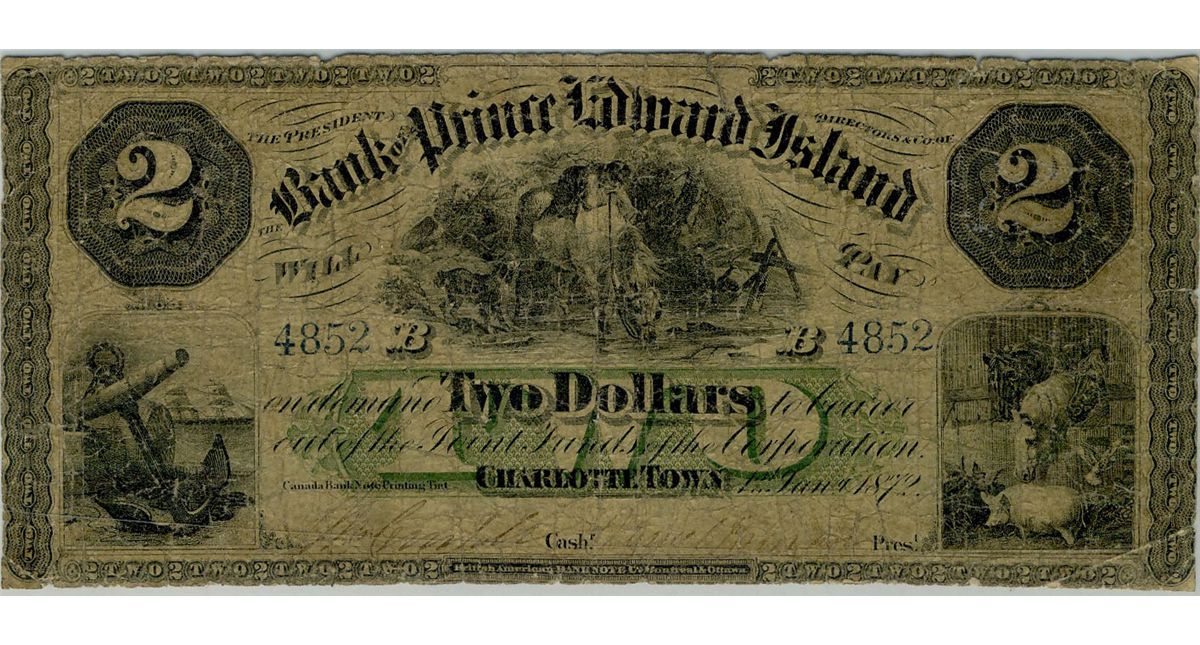 The Bank of Prince Edward Island; 1872 $2 #4852 CH-600-12-06 PMG VG10 Net. Rare $2 issue with minor tears