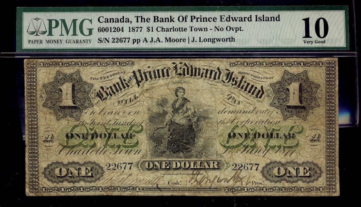 The Bank of Prince Edward Island 1877 $1 #22677 CH-600-12-04 PMG VG10.