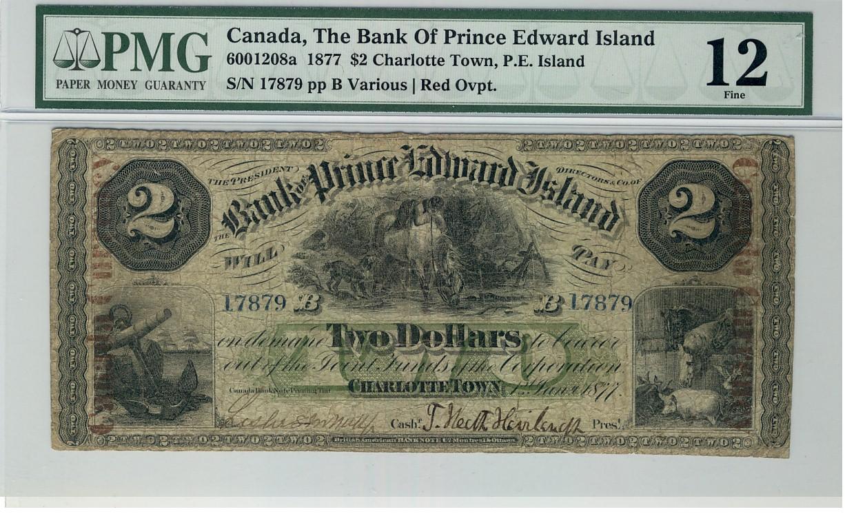 The Bank of Prince Edward Island, 1877 $2 #17879, CH-600-12-08a, PMG F12.