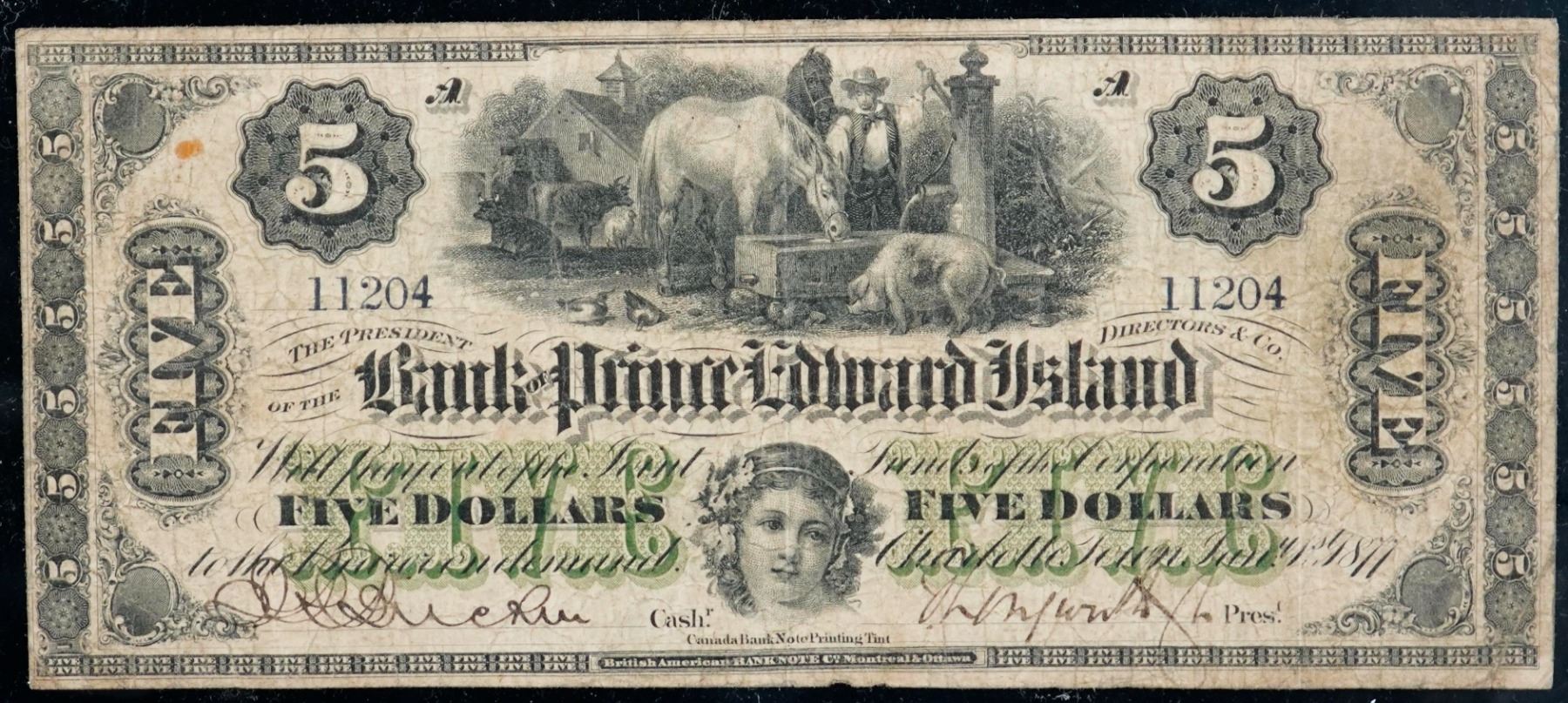 The Bank of Prince Edward Island 1877 $5 CH-600-12-12 11204 No O/P Fine