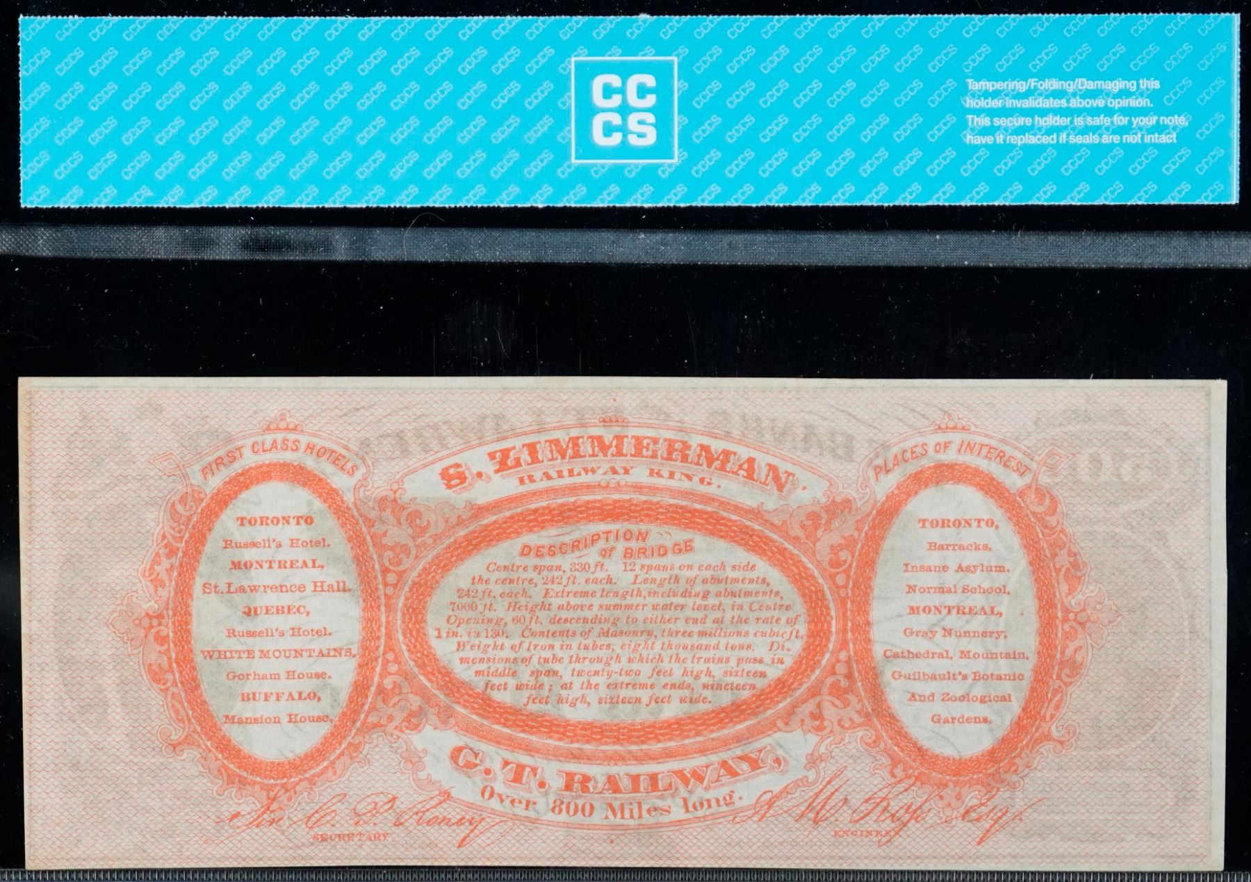 The Bank of St. Lawrence; Victoria Bridge $500 - G.T. Railway - Montreal - Advertising Note - Original CCCS Superb Gem Uncirculated-67