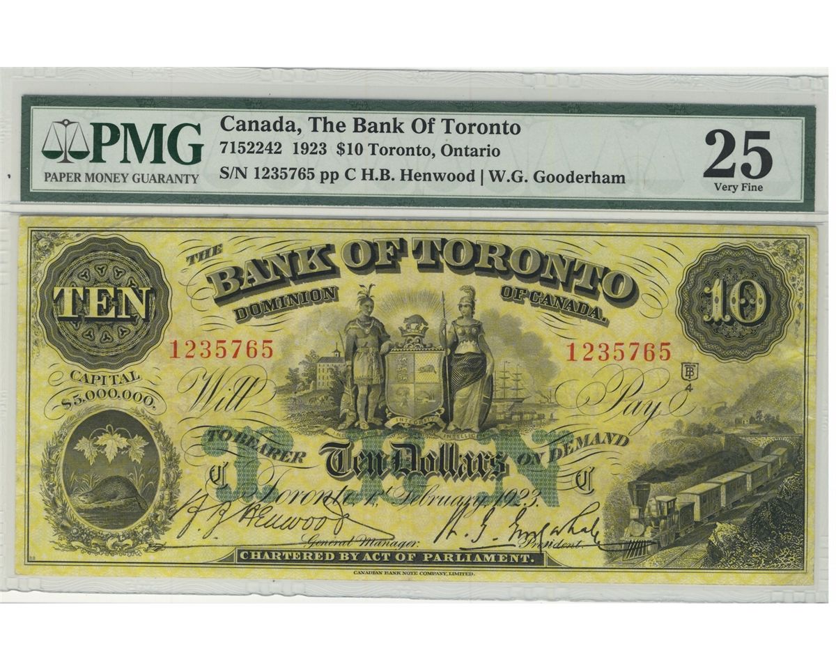 The Bank of Toronto; 1923 $10 #1235765 CH-715-22-42 PMG VF25.