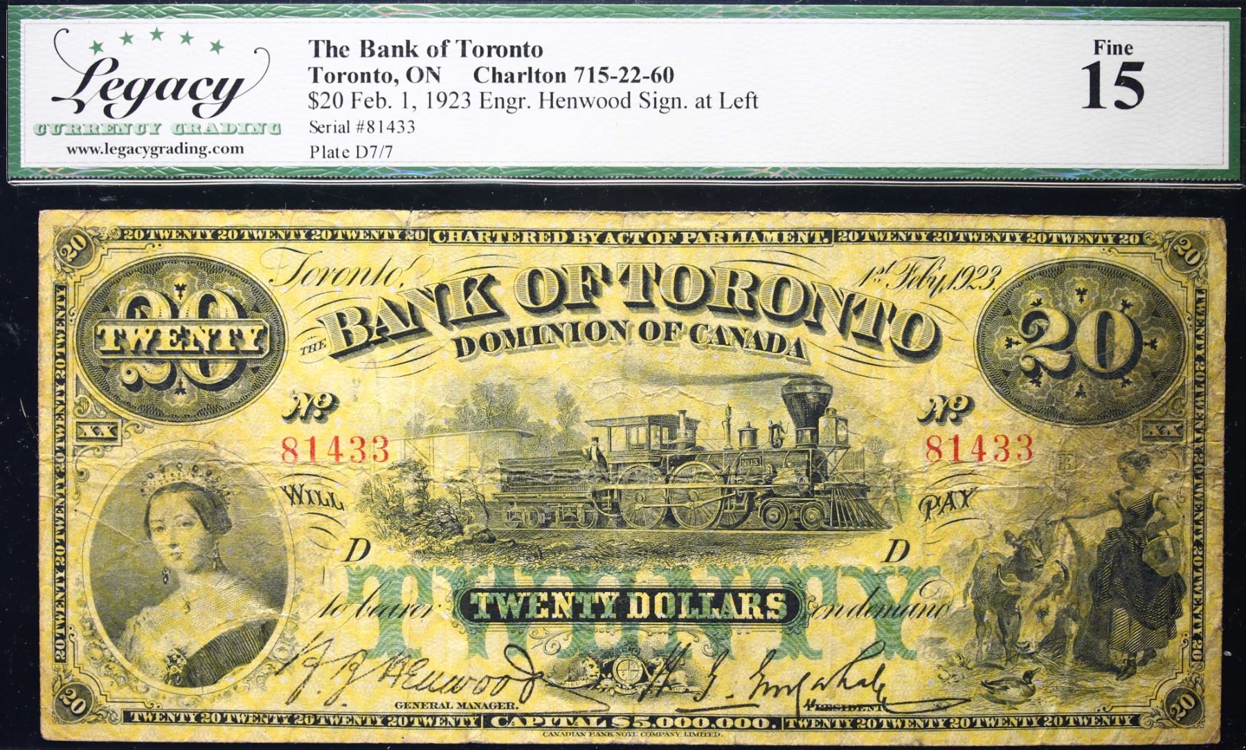 The Bank of Toronto 1923 $20 CH-715-22-60 #81433 LCG Choice Fine-15