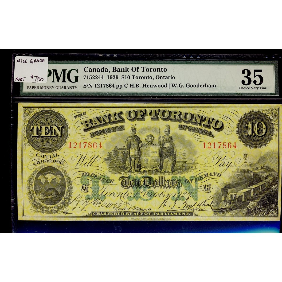 The Bank of Toronto 1929 $10 #1217864 CH-715-22-44 PMG VF35.