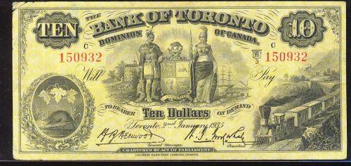 The Bank of Toronto 1935 $10 CH:715-24-08 150932, choice VF to VF+, nick.