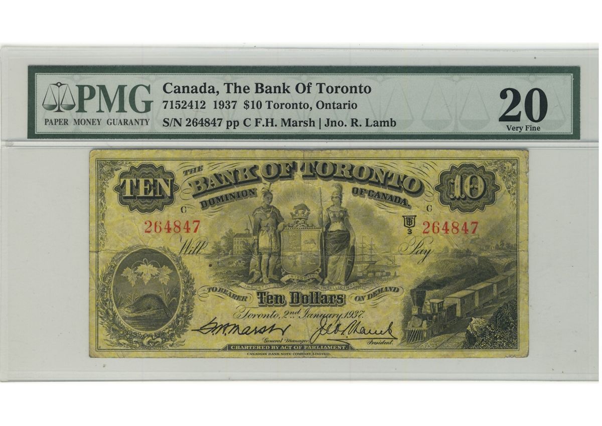 The Bank of Toronto; 1937 $10 #264847 CH-715-24-12 PMG VF20.