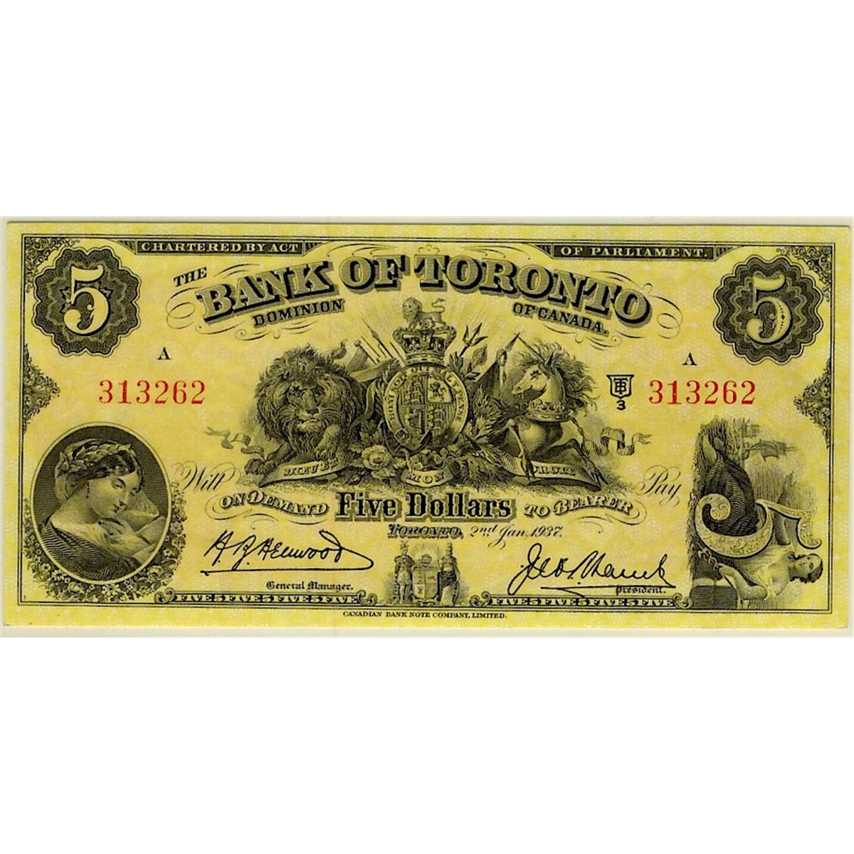 The Bank of Toronto 1937 $5 313262 CH-715-24-04 PCGS EF45PPQ.
