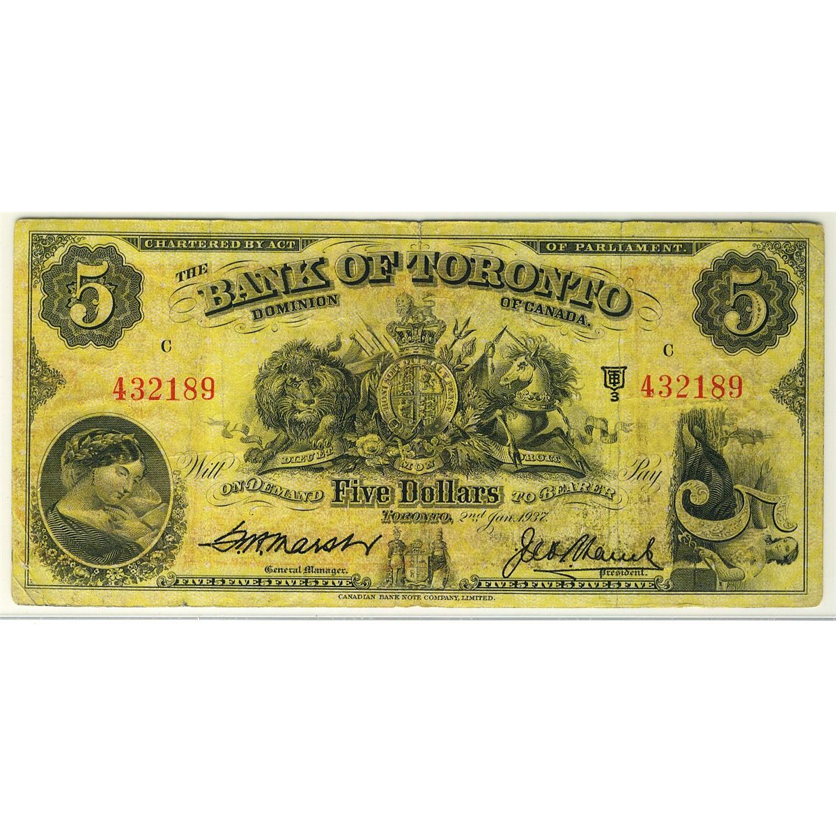 The Bank of Toronto 1937 $5 #432189 CH-715-24-06 PCGS VF20