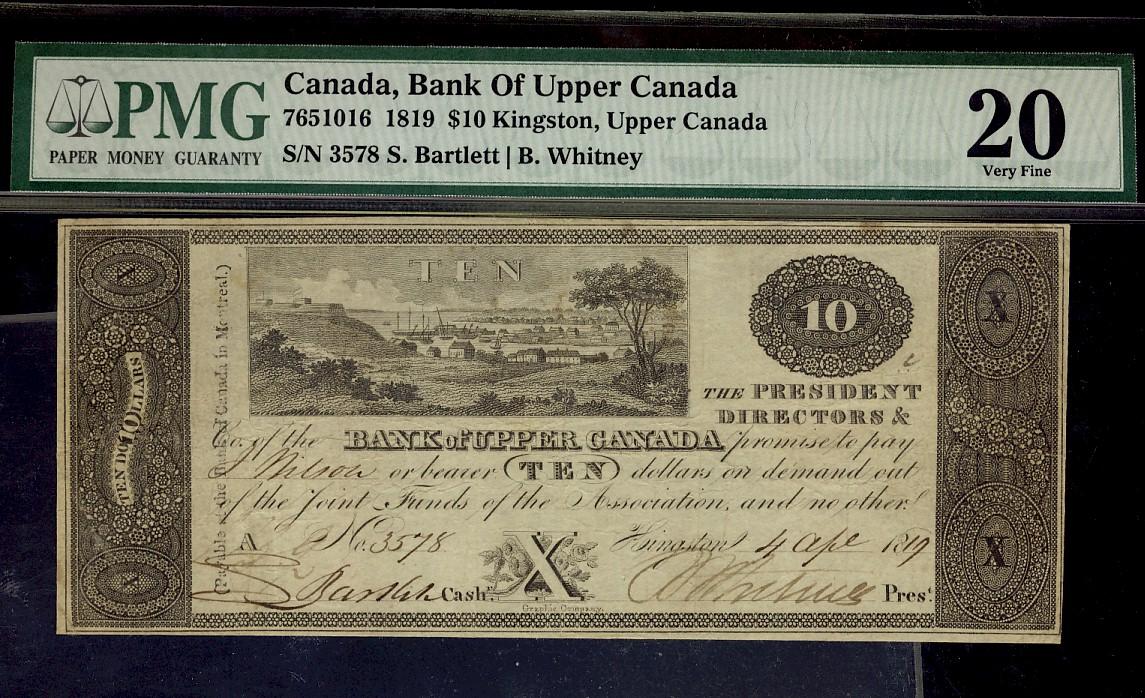 The Bank of Upper Canada 1819 $10 Kingston #3578 CH-765-10-16 PMG VF20.