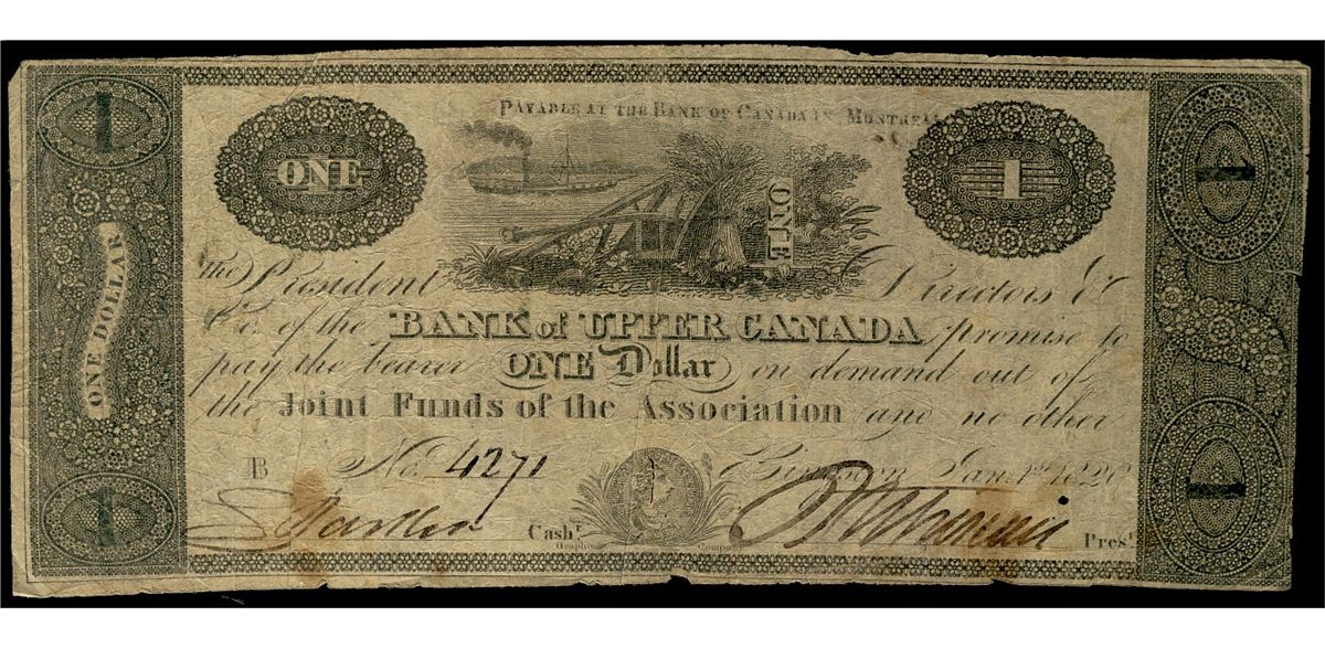The Bank of Upper Canada; 1820 $1 #4271 CH-765-12-02. Fine for grade.