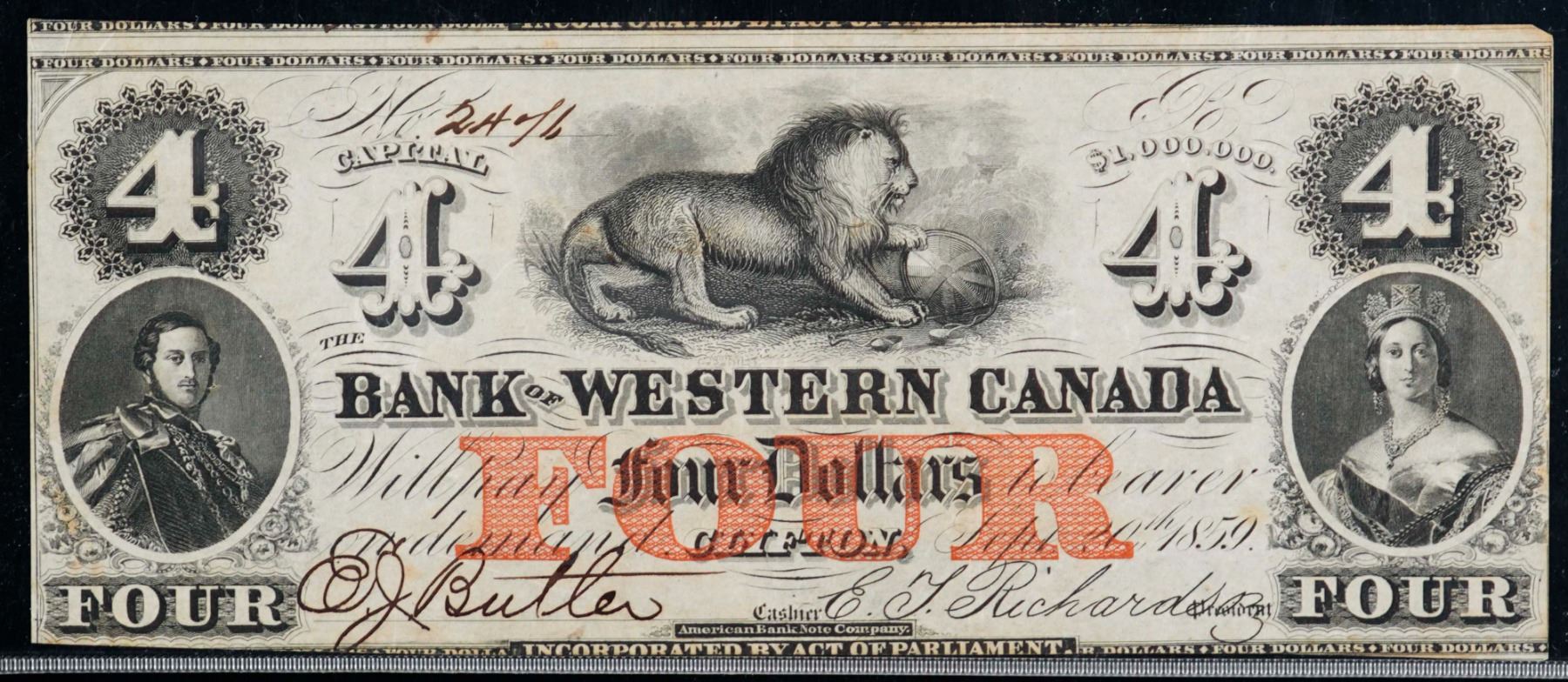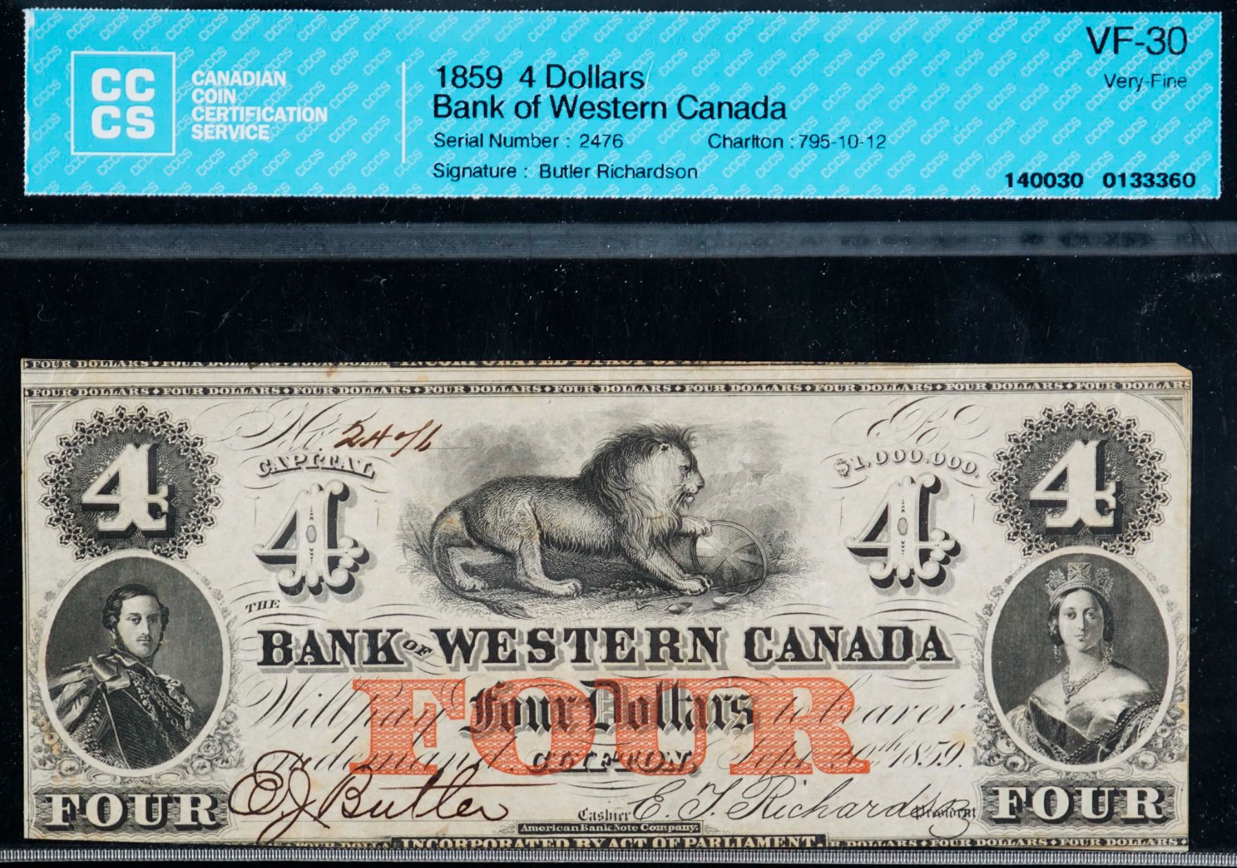 The Bank of Western Canada 1859 $4 #2476 CH-795-10-12 CCCS Choice Very Fine-30