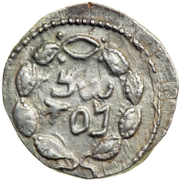 The Bar Kokhba War, 132-135 CE. AR Denar (2.47 g) attributed to year 3 (134-135 CE). Palaeo-Hebrew inscription "Shim'on" within wreath topped by a medallion and terminating in ribbon ties. Reverse: One-handled jug right with palm branch to right; around, Palaeo-Hebrew inscription "For the Freedom of Jerusalem". Mild 87 [22 examples cited]; cf. AJC II, plate 27, 67a for this obverse die; H-1422. Very Fine to Extremely Fine. .