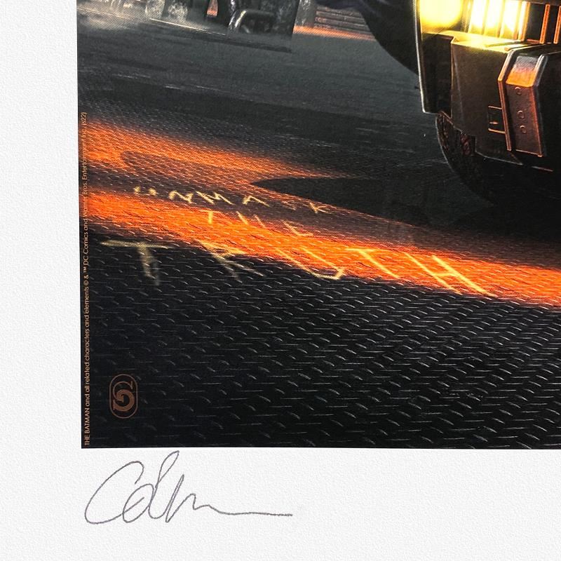 "The Batman" is a limited edition giclee on paper from DC Comics and Chris Skinner, PP numbered 3/4 and bearing the authorized signature of the artist. Includes Letter of Authenticity. Measures approx. 18" x 24" (border) 14" x 20" (image).