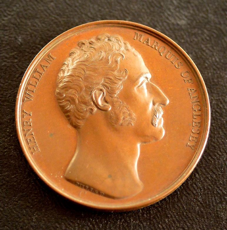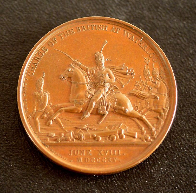 The Battle of Waterloo, 1815, Obv: Bust, right, "Henry William Marquis of Anglesey"; Rev: Equestrian figure of Anglesey, left, leading a cavalry charge, "Charge Of The British At Waterloo", "June XVIII MDCCCXV" in exergue; Ae, 41mm, good VF, by G. Mills/ A.J. Depaulis, obv. after F. Chantrey, BHM 859, Eimer 1069, Bramsen 1647, Mudie 34. Sir Henry William Panet, 1st Marquis of Anglesey, (1768-1854), led the charge of the second brigade. From Mudie's series commemorating British Victories issued in 1820.