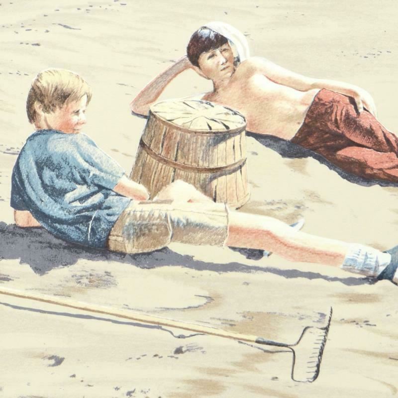 "The Beach Combers" is a limited edition serigraph on paper by William Nelson, numbered and hand signed by the artist! Measures approx. 29" x 22" (with border); 25" x 18" (image).