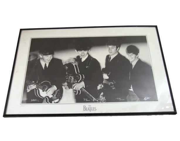 The Beatles copy signed framed print poster. Print showcases all Beatles with their respective autographs. (approx. 36" x 24")