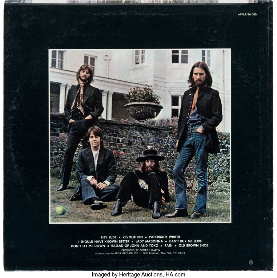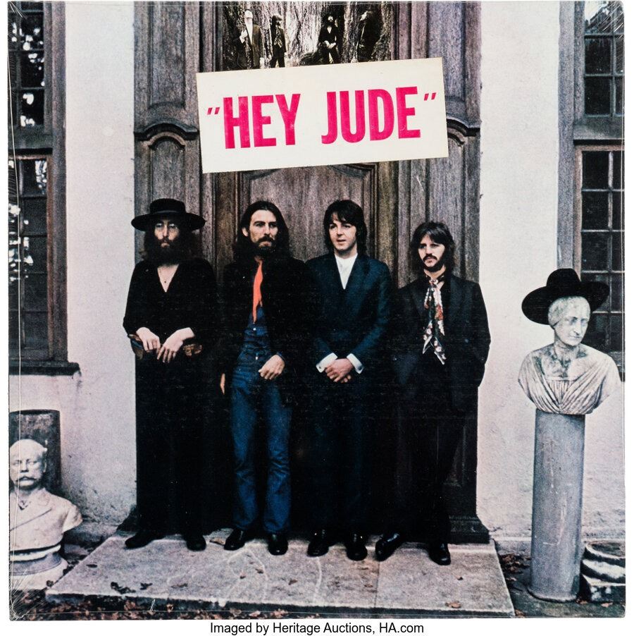 The BeatlesHey JudeStereo LP With Small Hype Sticker Still Sealed (Apple Records, SW-385) (1970).Wow! Extremely rare and desirable. The title cut was the group's biggest single, and headlined this compilation which was released in-between Abbey Roadand Let It Be. The front and back photos of this cover were the last photos ever taken of the Beatles together. Hey Judewas going to be titled "The Beatles Again" and some early copies have this title printed on the disc label with a different LP#SO-365.