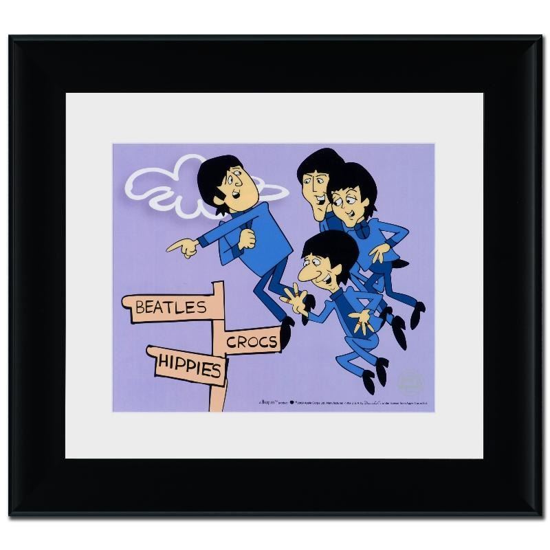 This must-have sericel re-creates a wacky scene from "The Beatles" Saturday morning cartoon series! "The Beatles: In Air" is a limited edition sericel and bears the official DenniLu Company stamp! This piece has been framed and is ready to hang. Includes Certificate of Authenticity! Measures approx. 20" x 18" (framed); 12" x 10" (cel and background). Retail Price $550.00. PRICE INCUDES FREE SHIPPING IN THE U.S. - SHIPPING WILL BE ADDED TO YOUR INVOICE FOR ALL BUYERS OUTSIDE OF THE U.S.