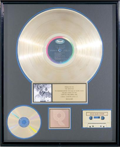 “Revolver” coincided with the Beatles North American Tour, yet no songs from the album were performed. The album was released in August 1966 and certified gold on 8/24/66. It was #1 for 6 weeks and spent 24 weeks in the Top 40. This RIAA certified gold “R” style hologram format award reads “Presented to The Beatles” and is 17 x 21”, NRMT.