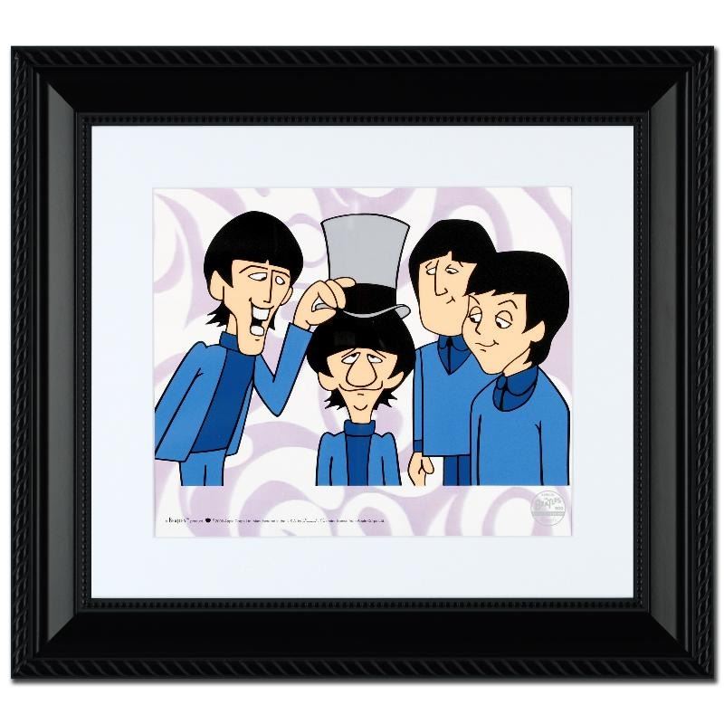This must-have sericel re-creates a wacky scene from "The Beatles" Saturday morning cartoon series! "The Beatles: Ringo's Top Hat" is a limited edition sericel and bears the official DenniLu Company stamp! This piece has been framed and is ready to hang. Includes Certificate of Authenticity! Measures approx. 20" x 18" (framed); 12" x 10" (cel and background). Retail Price $550.00. PRICE INCUDES FREE SHIPPING IN THE U.S. - SHIPPING WILL BE ADDED TO YOUR INVOICE FOR ALL BUYERS OUTSIDE OF THE U.S.