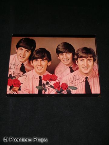 From the Lester Glassner Collection. This is an autographed color Beatles photo featuring the imprinted signatures of ALL FOUR Beatles . Paul McCartney has inscribed 'Hello Michael' and the other three have added their signatures. For fans of The Beatles, this is the holy grail of autographs and a true piece of music history being offered by Premiere Props. (measures approx. 8" x 10") Lester Glassner was a collector of Pop culture artifacts whose collection included movie posters, lobby cards, toys, and more than 250,000 movie stills.