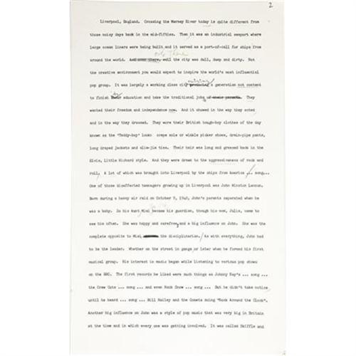 <B><I>The Beatles -- The Days In Their Life</B></I></B></I> <B>30-Disc Radio Project (T. M. Special Projects, 1981).</B></I> This ambitious project traced the roots of each of the Beatles members, the history of how they met and begin playing together, and how their personal lives were affected, all with the backdrop of their incredible music. It's a 30 hours journey, recorded on 30 12" discs in 1981, so the history included the death of John Lennon in 1980. Dallasite Ira Lipson was the host narrator. Included with the discs is the voluminous working script, including last minute changes and notes, and a logo sheet for use by local stations to promote the show. All the discs are at least in Near Mint (NM 8), with most in MT 9. A truly unique collection!<BR><BR><b>Shipping:</b> Recordings (<a target="_blank" href="http://www.heritageauctions.com/common/shipping.php">view shipping information</a>)