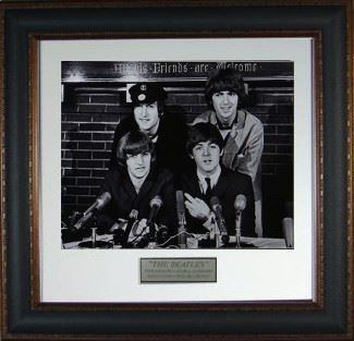 The Beatles were an English rock band, formed in Liverpool in 1960 and one of the most commercially successful and critically acclaimed acts in the history of popular music. From 1962 the group consisted of John Lennon, Paul McCartney, George Harrison and Ringo Starr. The group came to be perceived as the embodiment of progressive ideals, seeing their influence extend into the social and cultural revolutions of the 1960s. Featuring one of the most iconic Rock and Roll photographs ever shot. The Beatles final Press Conference before invading America has all four members of the band Paul McCartney, Ringo Starr, John Lennon, and George Harrison. 11x14 Photo w/ Custom Matting and Premium Leather Framing to Approx 26x30 in size.