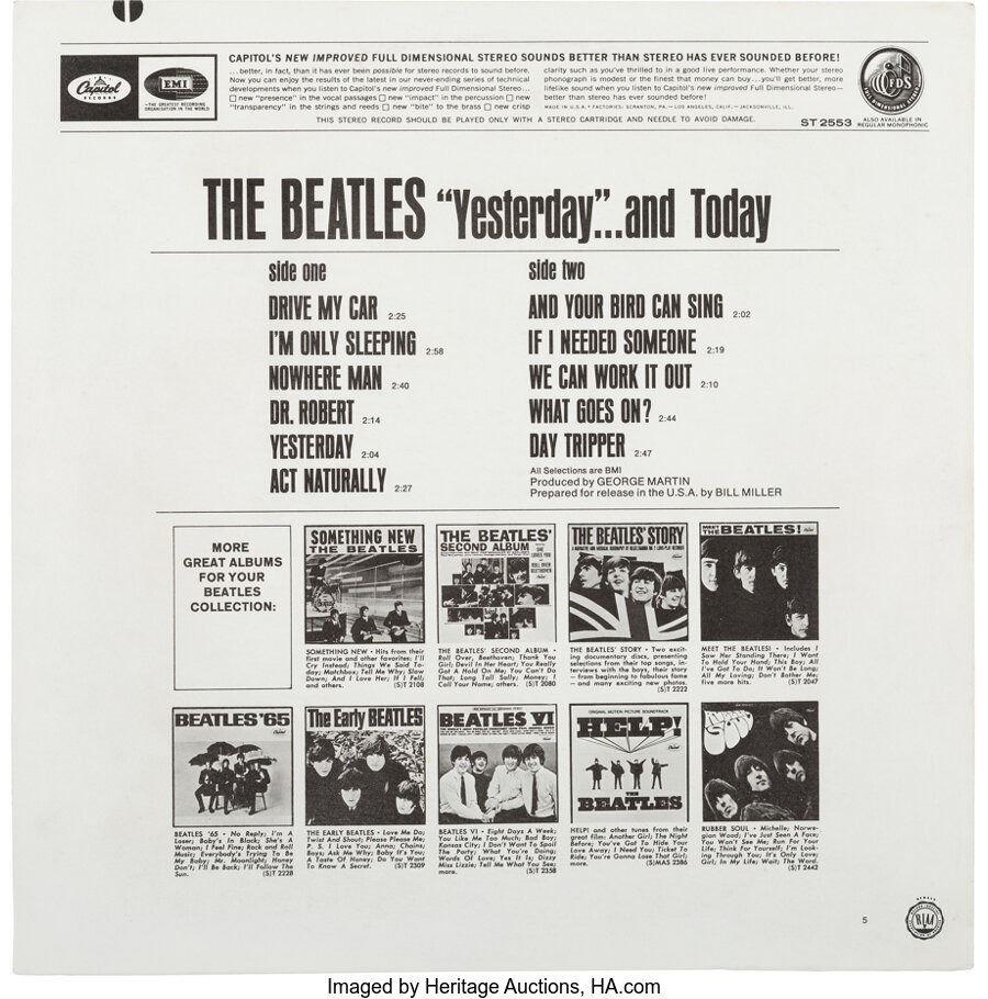 The original cover for the Yesterday and Todayalbum caused such a stir before hitting retail markets that virtually all copies were pulled before the public could purchase one at retail outlets. The album was released in the US in 1966, in-between Rubber Souland Revolver.Capitol Records, to save money, added another image the "Trunk Cover" over the existing "Butcher Cover" albums that were not destroyed.