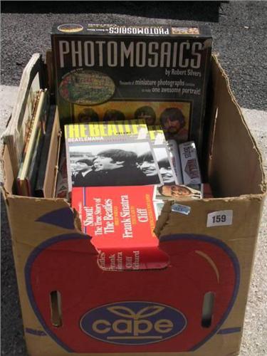 The Beatles a mixed box lot to include pictures, books, videos etc