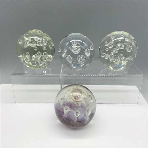 Quirky assortment of glass spheres with internal decorative bubbles.