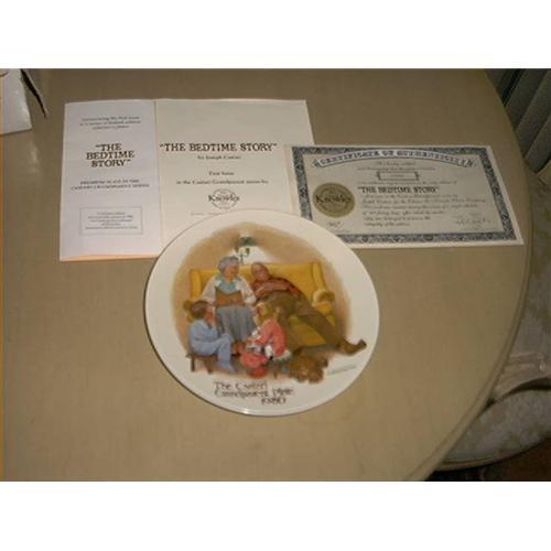 The Bed Time Story 1980. First Issue premiere plate in the CSATARI grandparents Series. A limited Edition, permanently closed in 1980 and bearing the hallmark of Knowles. It is 8 1/2" Diameter and certificate of Authenticity 01733 A is the only edition of the bed time story. 100 day firing, after that master was destroyed for the integrity of the edition. We have bought out a estate where they collected over 140 older plates and dolls, sculptures, and never even opened the boxes. We did so in order to photo them for you. So you are getting a collector plate that was never used or shown. The whole collection is like this. Please look at all the others we have up here. Hope you enjoy them. If you need more info or photos, please e-mail us. GREAT GIFT ITEM. HAPPY HOLIDAYS