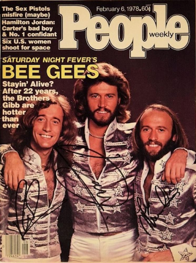 The BeeGees signed People Magazine autographed by Barry Gibb, Robin Gibb and Maurice Gibb. Magazine date February 6, 1978