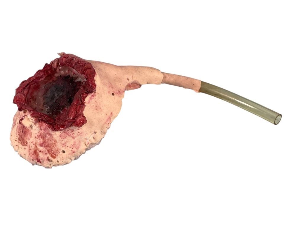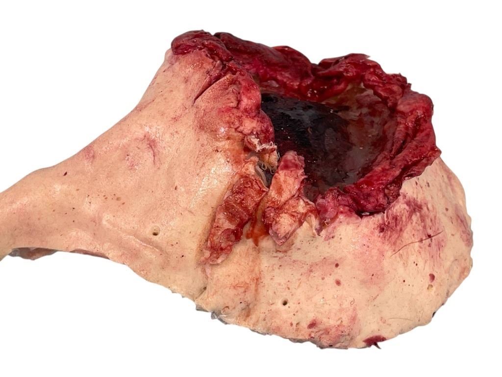 Original used blownout head appliance used in the James Gunn written survival horror film 'The Belko Experiment' (2016), which follows eighty foreigners (mainly Americans) working abroad for a company named Belko Industries in Bogotá, Colombia. One day, after they arrive at work, they are locked inside the building, and a mysterious voice announces that if the employees do not start killing each other, they will be killed themselves.