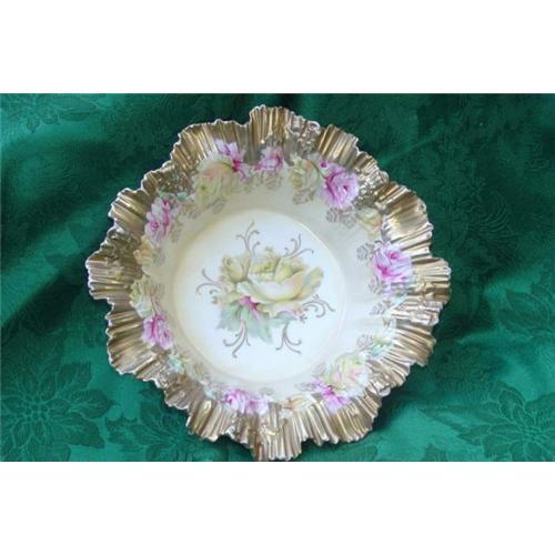 The bottom is rough as is normal with age. There are no chips or cracks. There are a couple of small dots of color on the outside, consistent with manufacturing. You can see the outline of your fingers through the bowl in sunlight. The diameter is 10 ¼?, 3 ¼? high, bottom diameter 5 1/8?. It is hand painted and came down from my family. We have had this lovely piece for years and it was for show only, so we did not use it. It is so colorful and just stands out wherever you place it. Do not see any markings, but you can tell just by looking and feeling it. Really a very beautiful piece and a great add to an collection you may have. Also makes a real great gift item to that special person. Hope you like it. Happy Holiday to all and enjoy the holidays...Be safe..