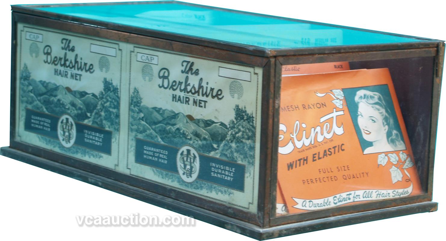 The Berkshire Hair Net Tin & Glass Store Countertop Display Case w/ hair nets - 14" x 7" x 6"