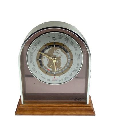Direct from the set of the hit television series The Big Bang Theory TV Series (2007 - Current) is this production used very unique metal with wood base world clock. This was used to decorate the set of the show and measures approximately 10" x 9".