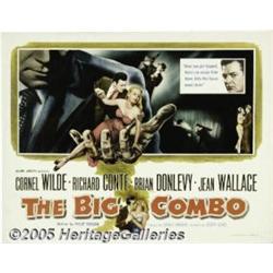 <B>The Big Combo (Allied Artists, 1955)</B></I> Half Sheet (22" X 28"). "It's my sworn duty to push too far." Lieutenant Leonard Diamond (Cornell Wilde) is obsessed with bringing down mob boss Mr. Brown (Richard Conte). However, he's running out of time and funds -- his boss is frustrated at the lack of results. When Brown's girlfriend Susan (Jean Wallace, Wilde's real-life wife) tries to commit suicide, Diamond finds a hint for a new avenue of investigation. This good looking half sheet has great images of Wilde, Wallace and Conte, as well as several scenes from the film. Some edge wear and tears, wrinkling, and very slight soiling on one corner. Very Fine+.