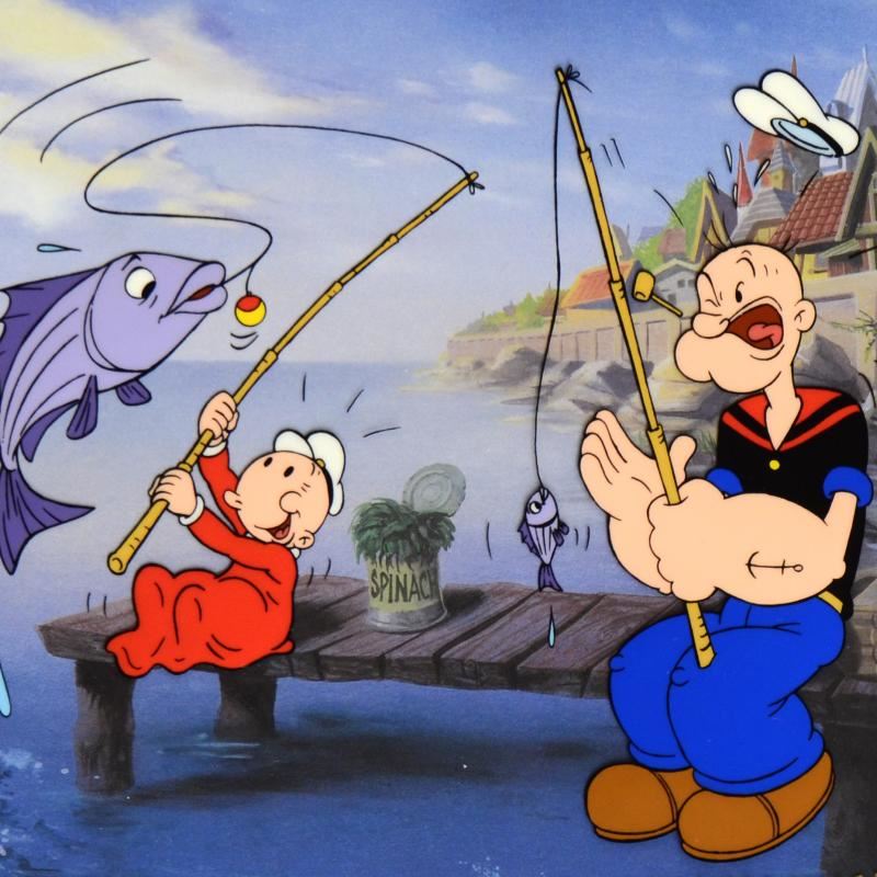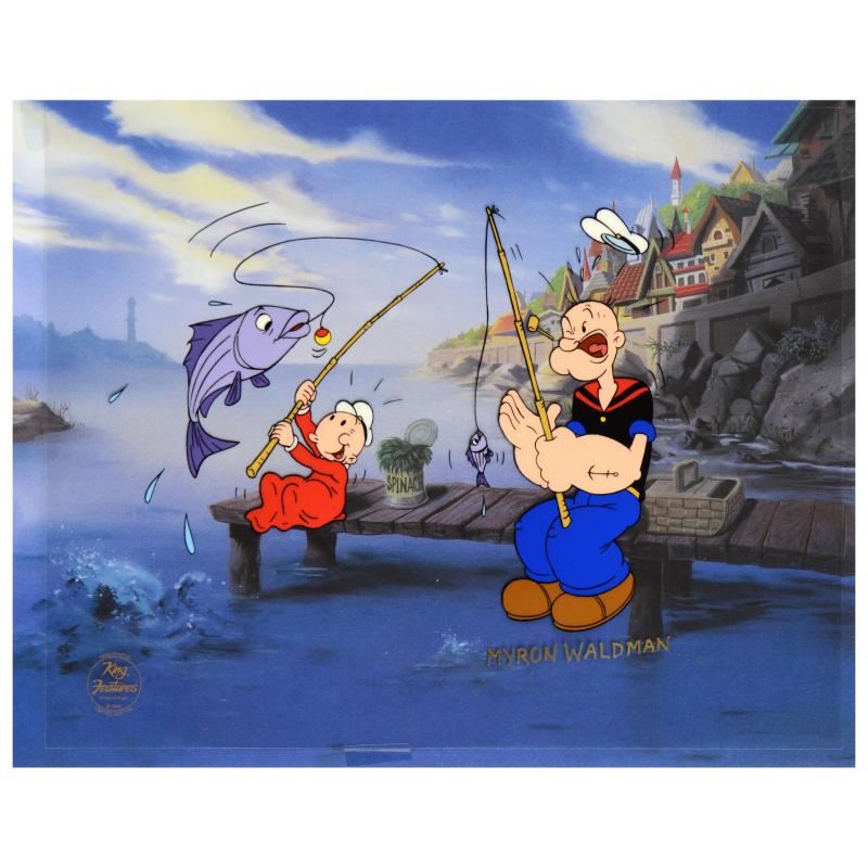 "The Big One" is a limited edition hand inked and hand painted animation cel with background, numbered and hand signed by Myron Waldman (1908-2006). Includes Certificate of Authenticity! Measures approx. 14" x 12" (background with cel).