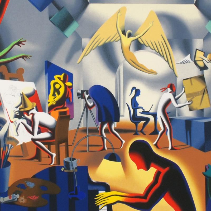 "The Big Picture" is a limited edition serigraph on paper, numbered and hand signed by Kostabi. Includes Certificate of Authenticity! Measures approx. 25.5" x 37.5" (with border), 29" x 21" (image).