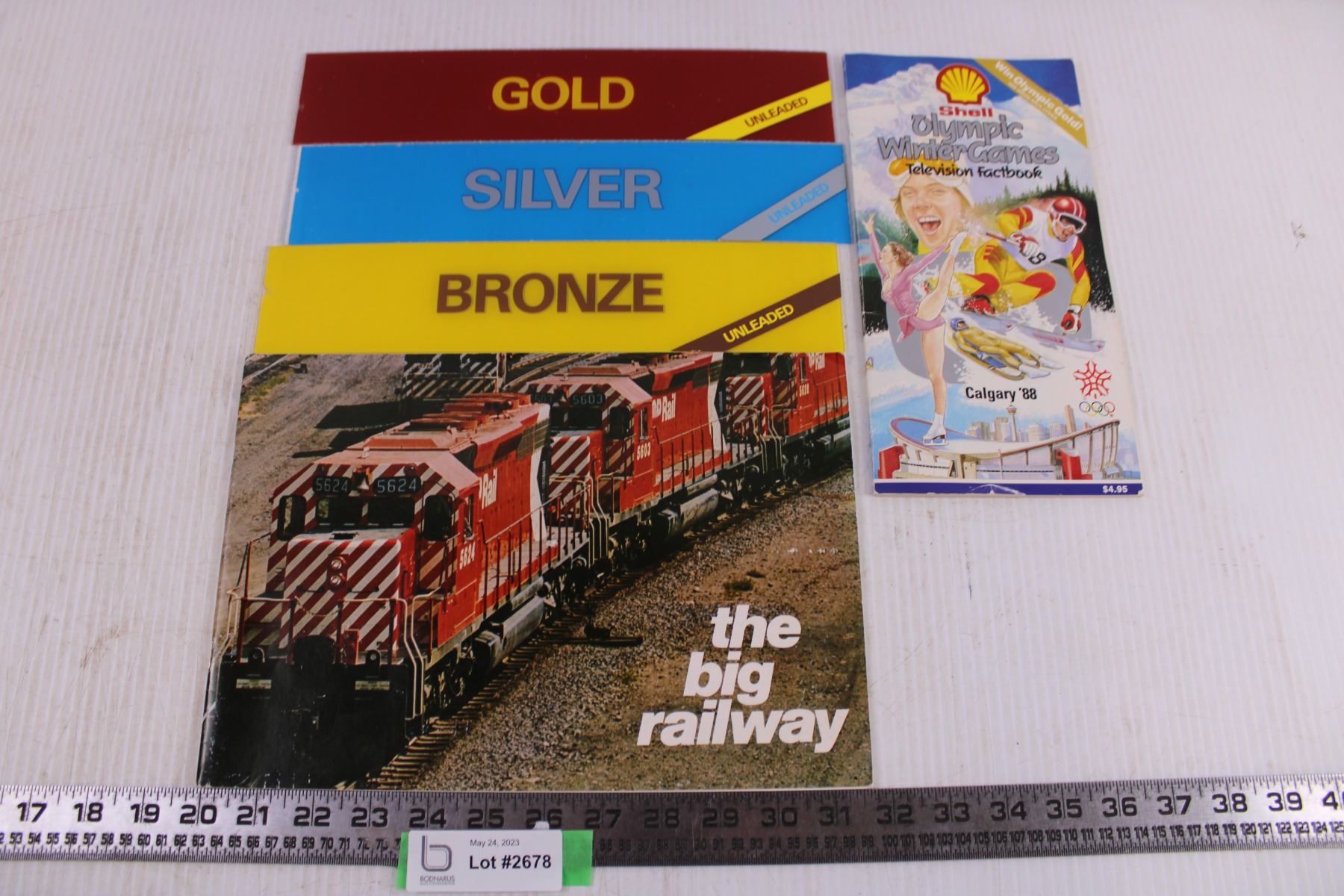 The Big Railway Book + Vintage Plastic Shell Gas Signs 1990's + Shell Olympic Winter Games television Factbook