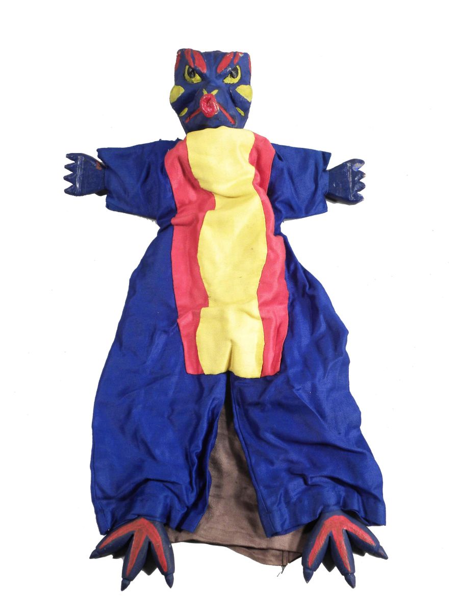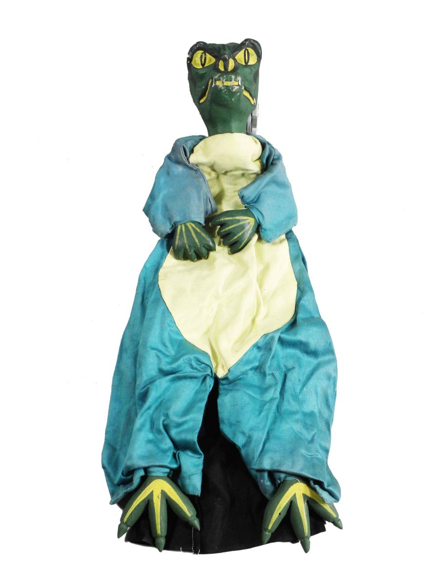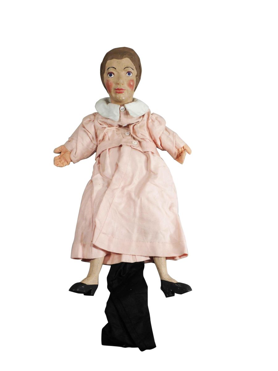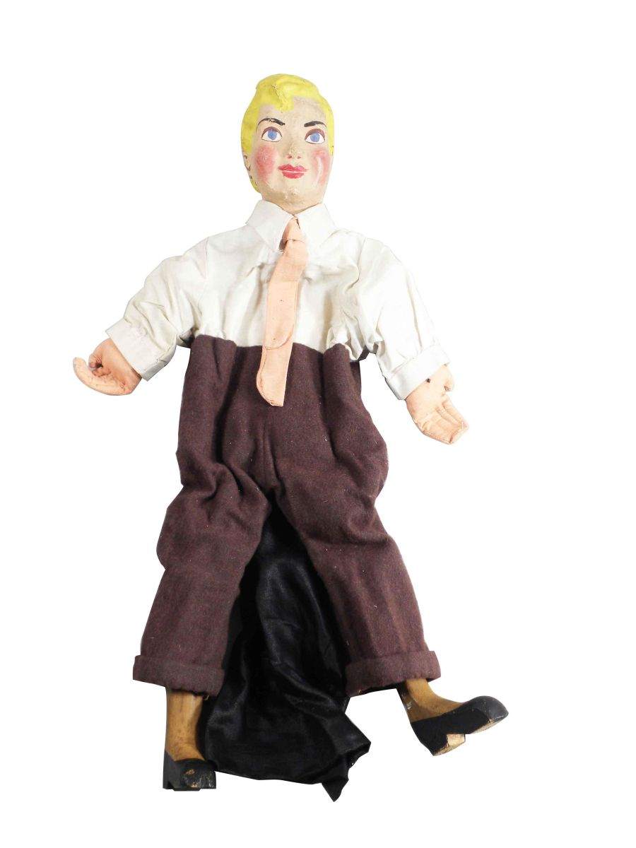 "The Big Show" A Guignol (Hand Puppet) Play in Four Scenes. Museum Extension Project W.P.A. Works Progress Administration, Pennsylvania. Ca. 1930's. A guided play, includes hand puppets, set up instructions and play. Cast of Hand Puppets include School age boy Johnny, Mother, Doctor Fix-it "The Dentist", Two tooth brushes, Two Germs , a Nerve and the Grandfather. Clothing on puppets is sign Marion Rubenstein. Characters are very good to good condition, aprox 21 inches tall.