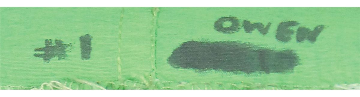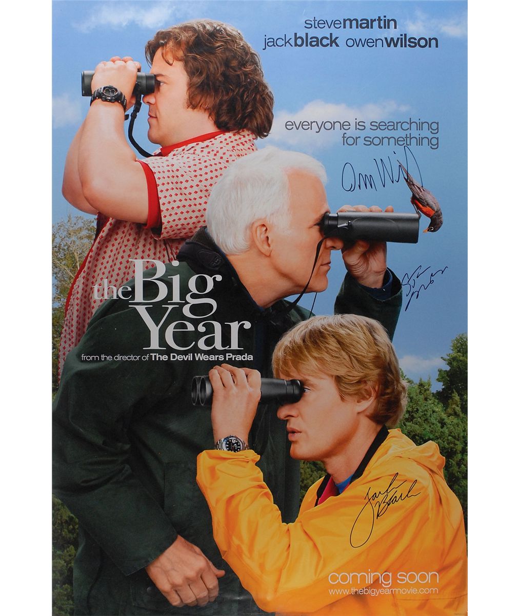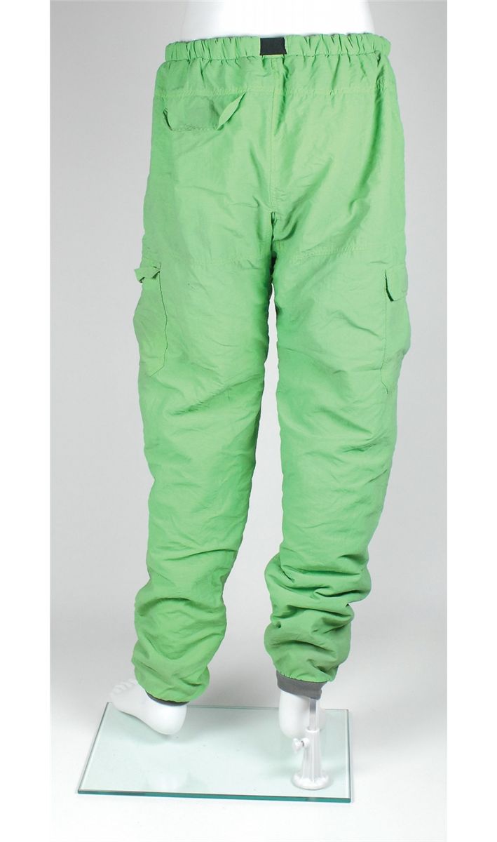 Screen-worn pants worn by Owen Wilson in the 2011 film The Big Year. Insulated lime-green cargo pants have a buckle on the front and “#1 Owen,” written on the inside of the waist in black felt tip. Accompanied by a certificate of authenticity from 20th Century Fox, as well as a copy of a 2011 letter from the Screen Actor’s Guild, which ran the charity auction where the pants were purchased. Also included is a color 27 x 40 one sheet movie poster for the film, signed in black felt tip by Owen Wilson, Steve Martin, and Jack Black. In fine condition.
