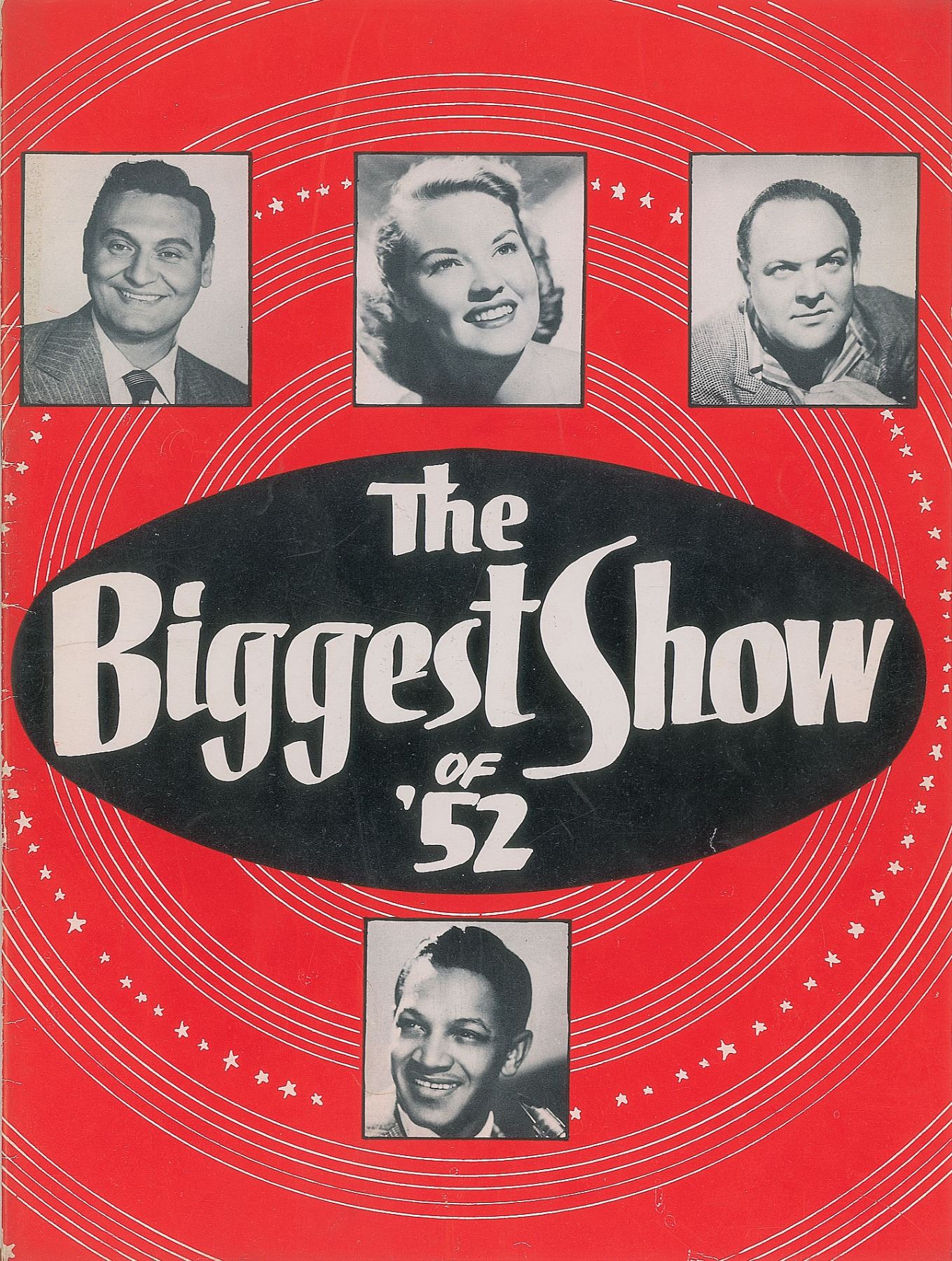 Original first edition tour program for The Biggest Show of '52, 16 pages, 9 x 12, for the show starring Frankie Laine, Patti Page, jazz star Illinois Jacquet, Billy May & His Orchestra, The Chocolateers, Jay Lawrence, The Clark Bros., and Don Rice. In fine condition, with light handling wear.