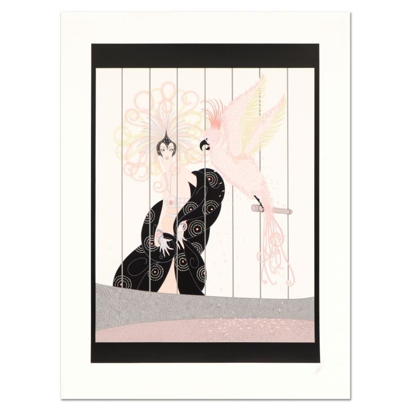 "The Bird Cage" is a hand signed limited edition serigraph on paper by Erte (1892-1990), numbered VI/CXXIV. Includes Certificate of Authenticity. Measures approx. 23" x 30.5" (border), 18" x 25.5" (image). Due to the age of this piece and the delicate nature of the paper it may have some slight imperfections.