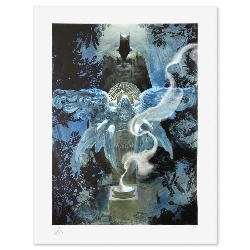 "The Birth of Batman" is a limited edition giclee on paper from DC Comics and Allen Williams, PP numbered 3/4 and bearing the authorized signature of the artist. Includes Letter of Authenticity. Measures approx. 24" x 18" (border) 20" x 14" (image).
