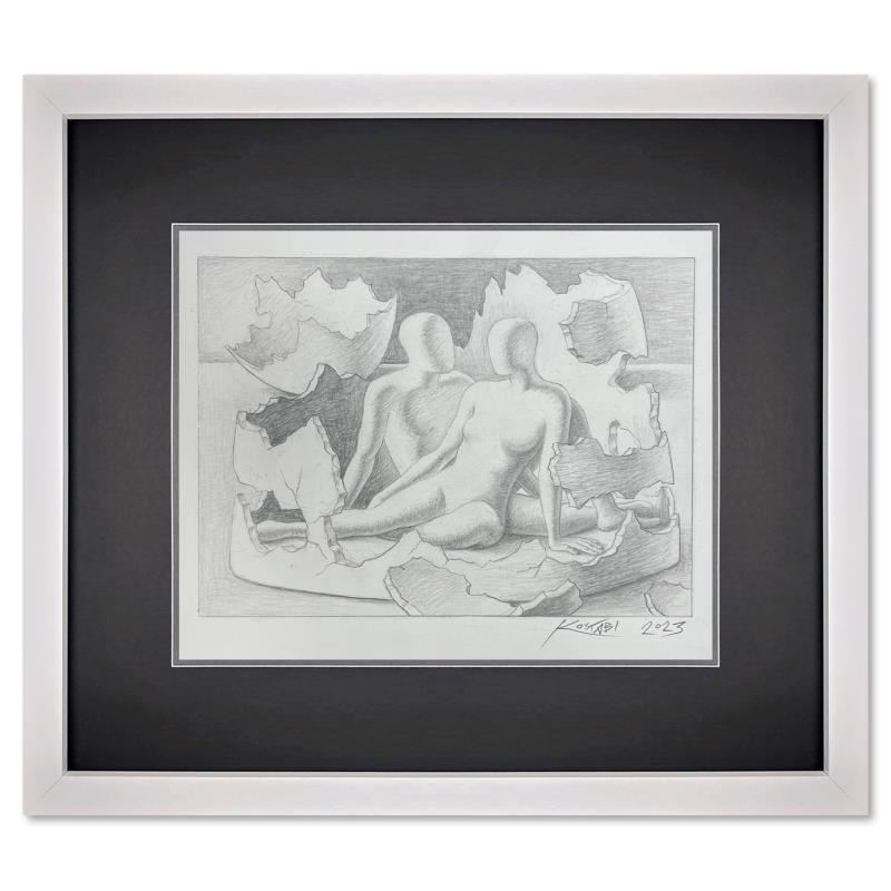 "The Birth of Wisdom" is an original drawing on paper by Mark Kostabi, hand signed by the artist. This piece comes custom framed and includes a certificate of authenticity. Measures approximately 13.5" x 15" (frame), 7.5" x 9" (image).