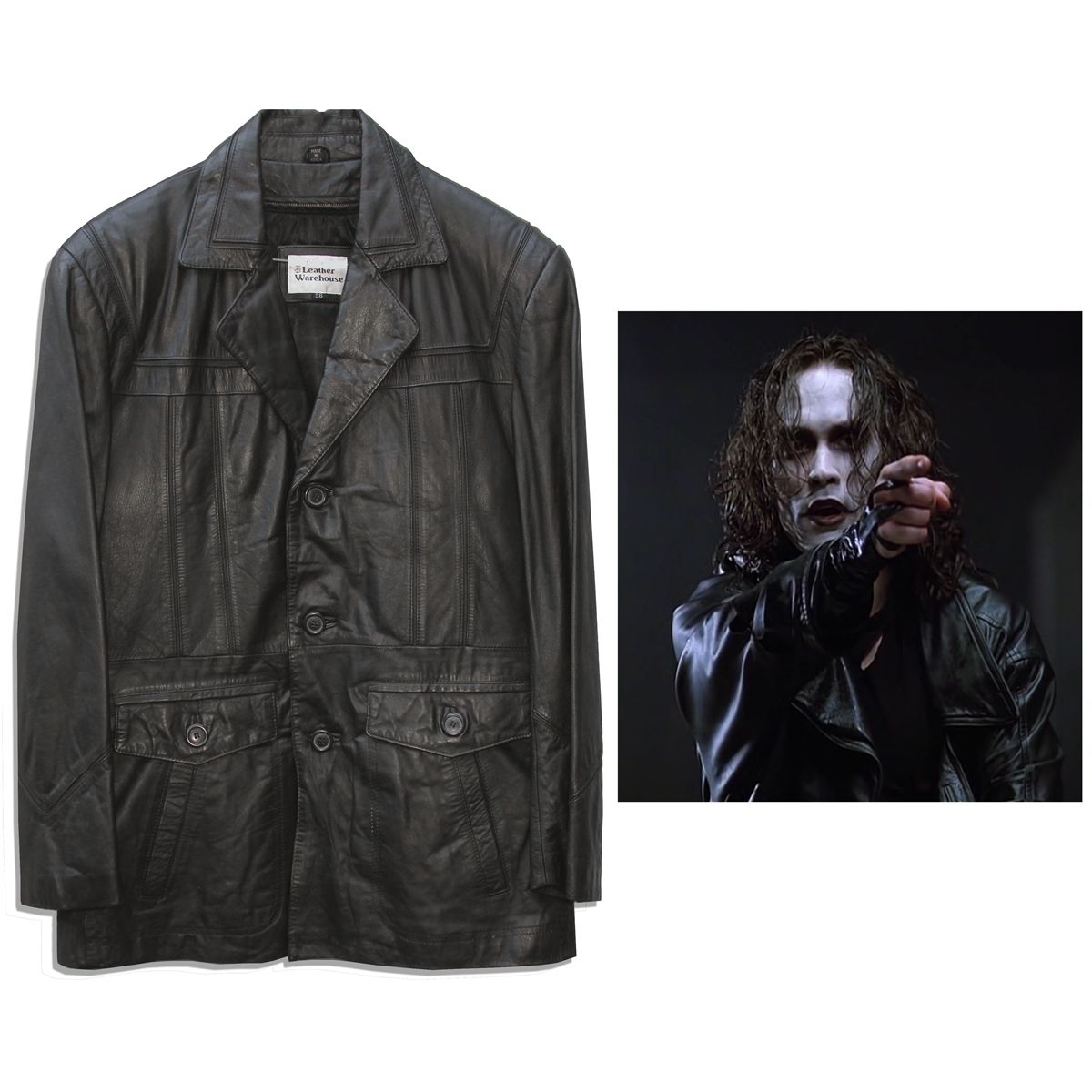 Brandon Lee's jacket worn and possibly bloodied when he was fatally shot by a gun mistakenly presumed emptied while filming ''The Crow''. Brandon, Bruce Lee's only son, starred as Eric Draven aka The Crow in the film based on the comic book of the same name. Lee sustained his mortal gunshot wound on 31 March 1993 when filming the movie's concluding scenes, a flashback sequence depicting his character's murder by a robber in his apartment. The on-set firearm professional had been dismissed from the set for the day, leaving the prop department, inexperienced with firearms, to handle the real .44 Magnum revolver. It had been loaded with real bullets with deactivated cartridges for one take, but the cartridges were not fully deactivated. As a result, a bullet partially fired unbeknownst to anyone, ejecting from the cylinder without exiting the gun's barrel, causing the malfunction known as a ''squib load''. After that take, the prop department emptied the revolver of the real bullets (those remaining in the cylinder) and filled it with blanks for the robbery scene, during which the blanks were to be fired at 12-15 feet from Lee by the robber character ''Fun Boy''. The next firing of the gun projected the surreptitiously lodged bullet from the barrel and into Brandon Lee, entering his body to the right of his navel and lodging in his spine. Lee underwent emergency surgery to no avail and passed away at age 28. Single-breasted black leather jacket by Leather Warehouse is a size 38. Reddish staining exists on the lining above the hem in the back. With a COA from the film's wardrobe supervisor Darryl Levine.