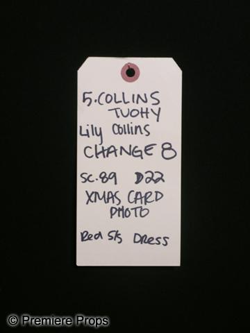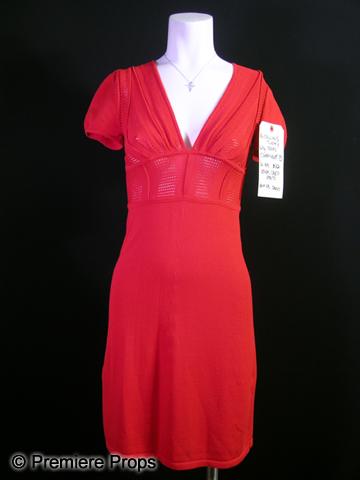 The Blind Side - From the heart warming film, this is Collins Tuhoy (Lily Collins) screen worn red "Catherine Malandrino" short sleeve knee length knit v-neck dress, (Size P) and faux silver necklace with rhinestone studded cross. This costume is complete with a wardrobe tag! This is Lily Collins first feature film, and she will be starring in next years blockbuster hit, Priest, with Paul Bettany, Cam Gigandet, Maggie Q, and many more. Do not miss your chance to own this amazing costume from Lily Collins first hit film! (TBS1013)