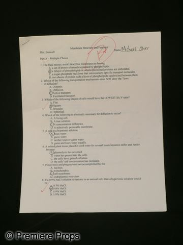 Michael Oher (Quinton Aaron) hero Mrs. Boswell 'Membrane Structure and Function' test that is graded with a B+. (approx 8 1/2" x 11").
